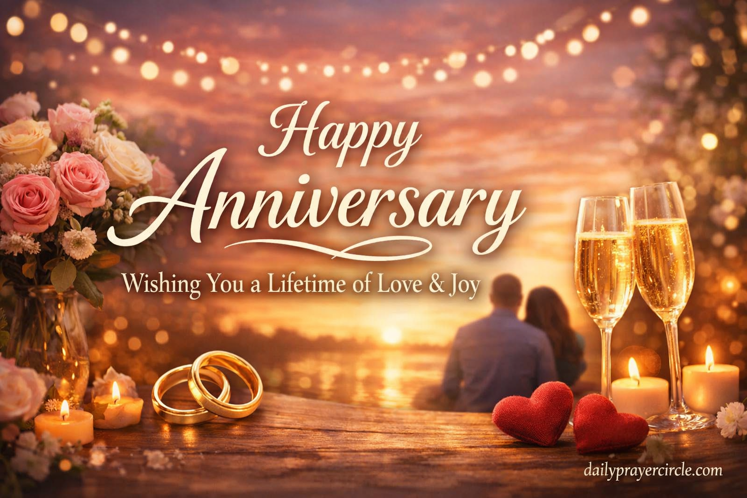 2. “Wishing you both a beautiful anniversary filled with love, peace, and treasured memories. May your bond continue to strengthen, your joys multiply, and your days together be wrapped in happiness and divine favor.”